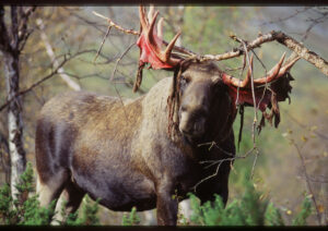 What is the bull moose doing in the picture?