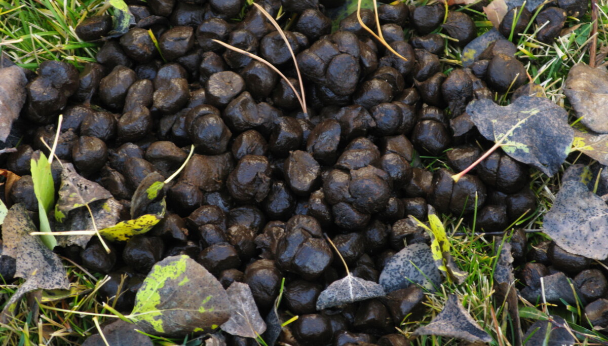 Moose droppings consist of small, round or oval pellets, 20–30 mm long and 15–20 mm wide.