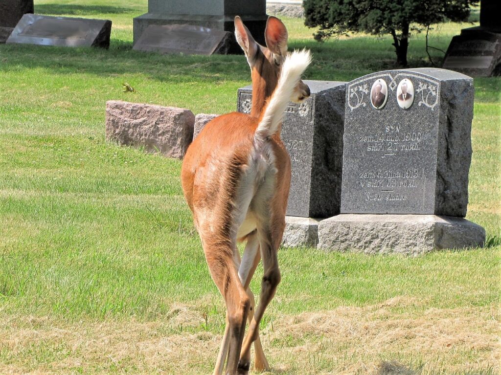 The rutting season occurs in the summer. During this time, bucks fight using their antlers and mark their territory with scent glands and scrapes on the ground.